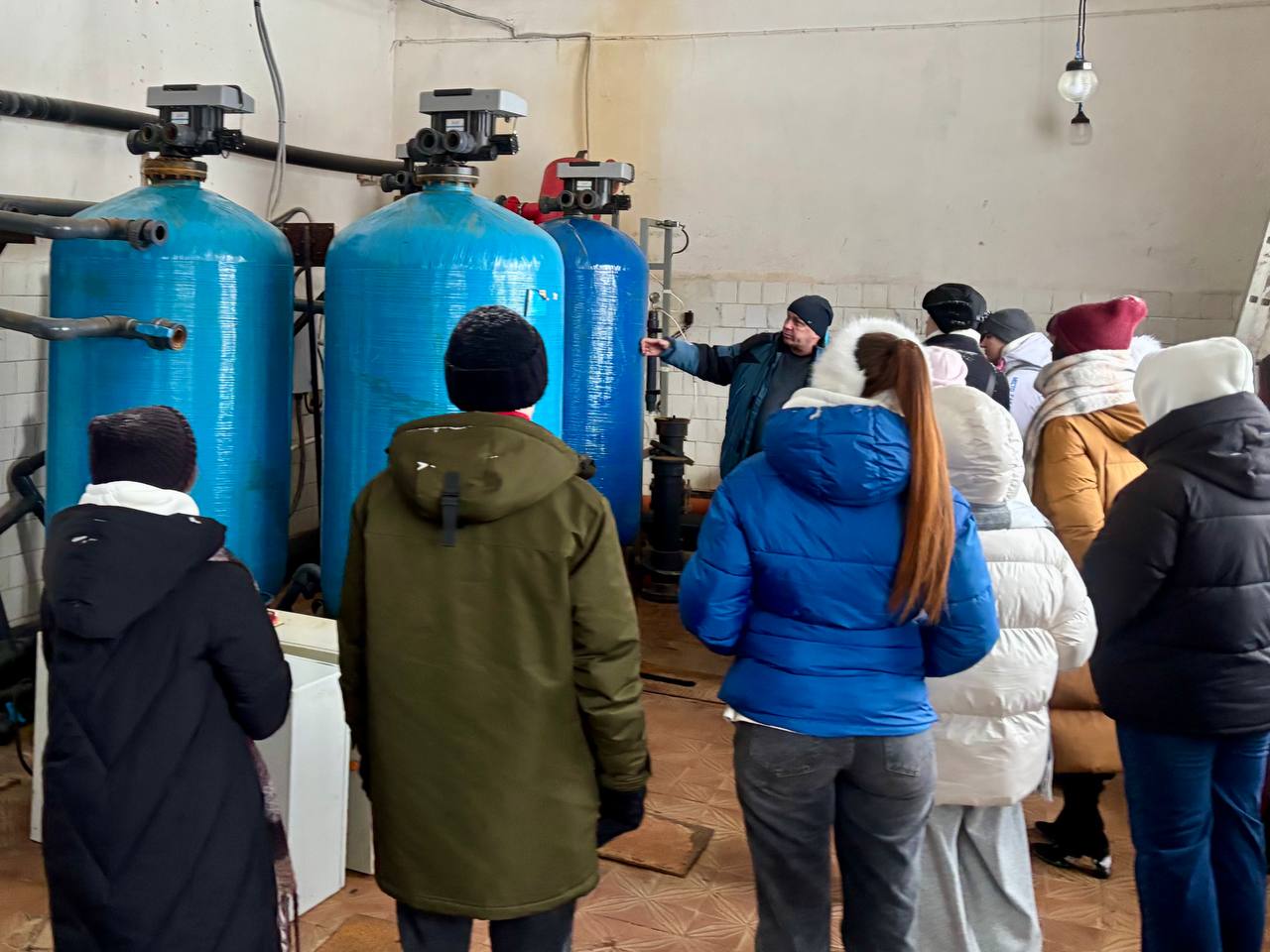 Ребята осмотрели систему водоснабжения в пос. Шварцевский Киреевского района, чтобы увидеть работу коммунального объекта, который находится в частной собственности и неудовлетворительном состоянии, требующего модернизации