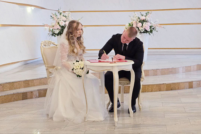 В Центральном дворце бракосочетания Тулы прошла торжественная церемония регистрации брака двух тульских студентов — Вадима Харитонова и Виктории Пученкиной