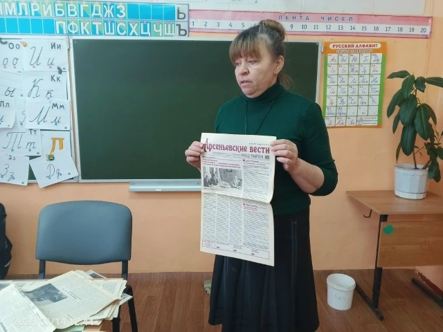 Библиотекарь Ясенковской школы рассказала детям о 95-летнем юбилее «Арсеньевских вестей»